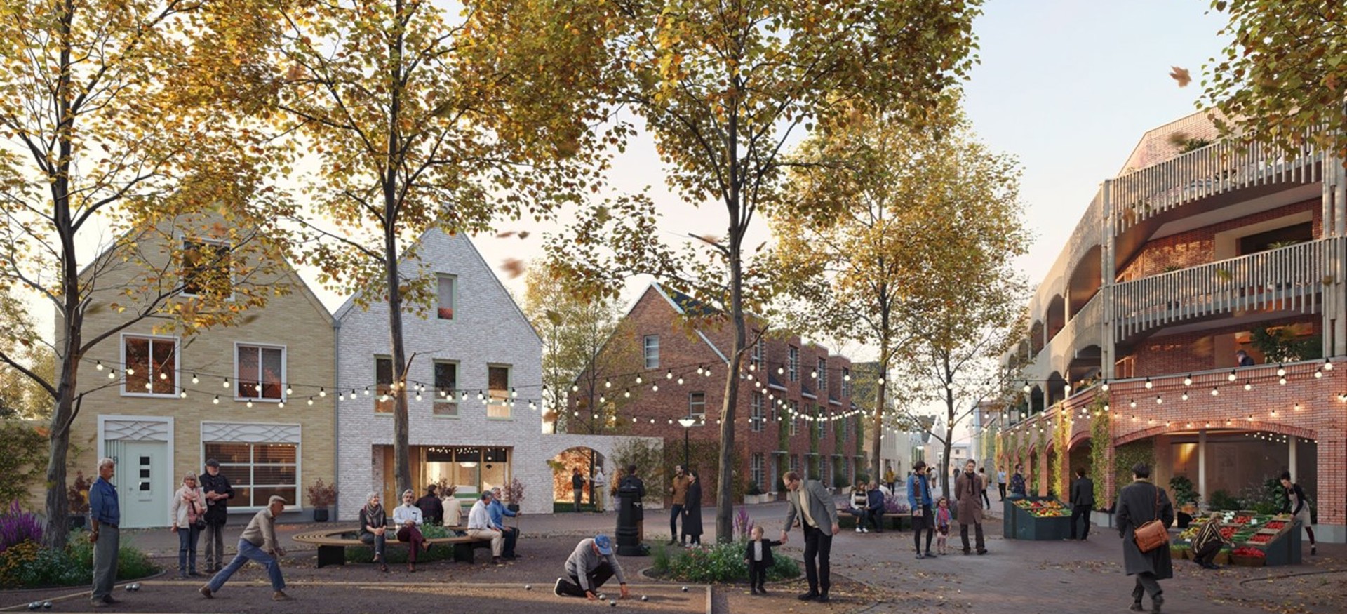 The new Ooievaarshoek neighbourhood offers a diverse housing programme, providing a suitable home for every stage of life. The plan includes terraced houses, apartments, detached homes, semi-detached houses and courtyard homes. This mix makes it possible for starters, young families, move-up buyers and seniors to live together in one neighbourhood. The courtyard homes and compact apartments support lifetime-friendly living, while the ground-oriented homes are attractive for families and move-up buyers. In this way, an inclusive neighbourhood is created where generations meet and residents can continue to grow within the area in the future.