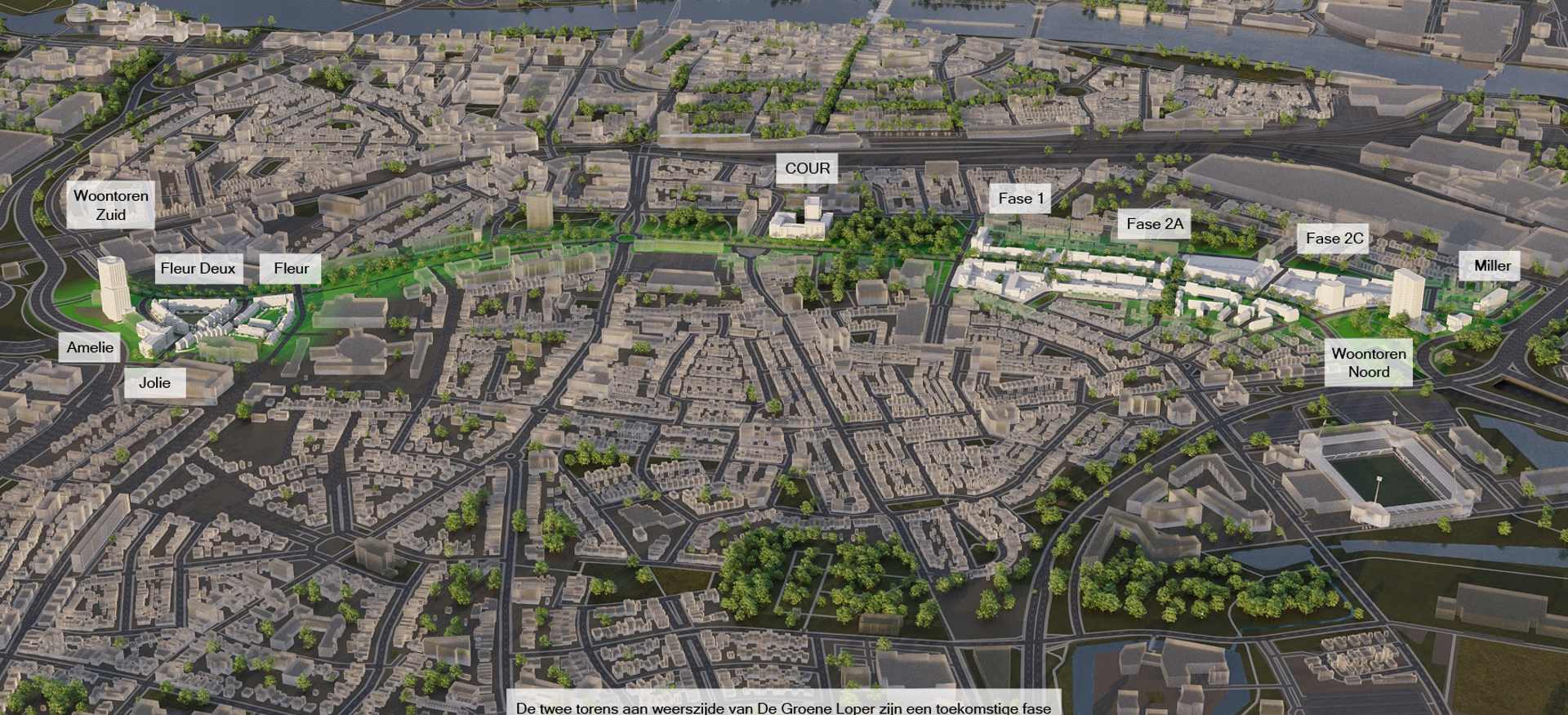 De Groene Loper is one of the most far-reaching area transformations in Maastricht. With the A2 being placed in a tunnel and the creation of a 2.5-kilometre-long urban park, the city not only gained high-quality public space, but also a new connection between neighbourhoods that had been separated for years. What was once a busy traffic artery has been transformed into an attractive urban district where quality of life takes centre stage.An area still developingThe foundations for De Groene Loper were laid with the completion of the tunnel in 2016 and the construction of the public space in 2017 and 2018. Since 2018, development of the area has continued in phases. Over the past three years, among others, Fleur, Miller, Amelie, Jolie, Gastenhuis and Laan van Bellevue have been completed.In total, De Groene Loper comprises approximately 1,200 homes, around 600 of which have now been realised. The programme consists of a mix of apartments and ground-level homes, including social rent, mid-market rent and owner-occupied (free-sector) housing, supplemented with amenities, hospitality and space for commercial real estate.