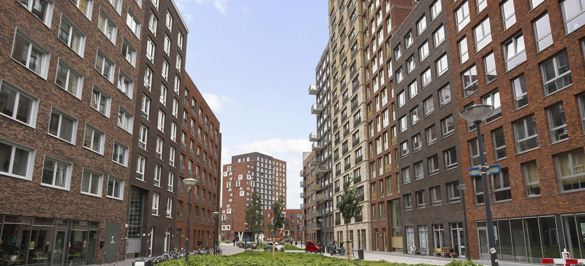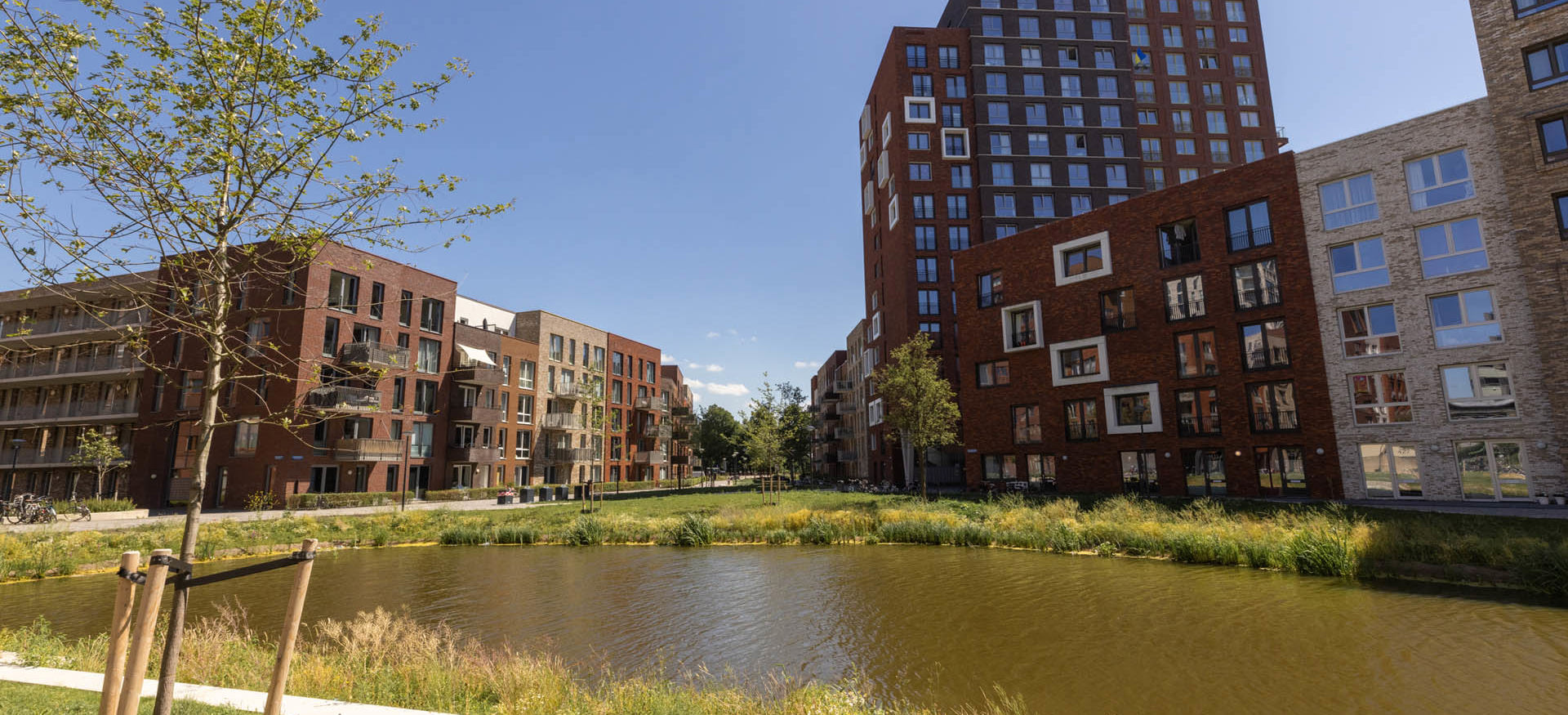 Central in Leiden, close to the historic city center, lies the (Y)ours project: the new student campus just a five-minute bike ride from the city center of Leiden. Life, living, working, and enjoying: all amenities of Leiden are within reach at this location opposite the beautiful Cronesteyn polder park. The approximately 2,000 student residences and 208 starter homes are divided over a total of six buildings. These are surrounded by car-free traffic zones for cyclists and pedestrians, as well as spacious green areas and water features.